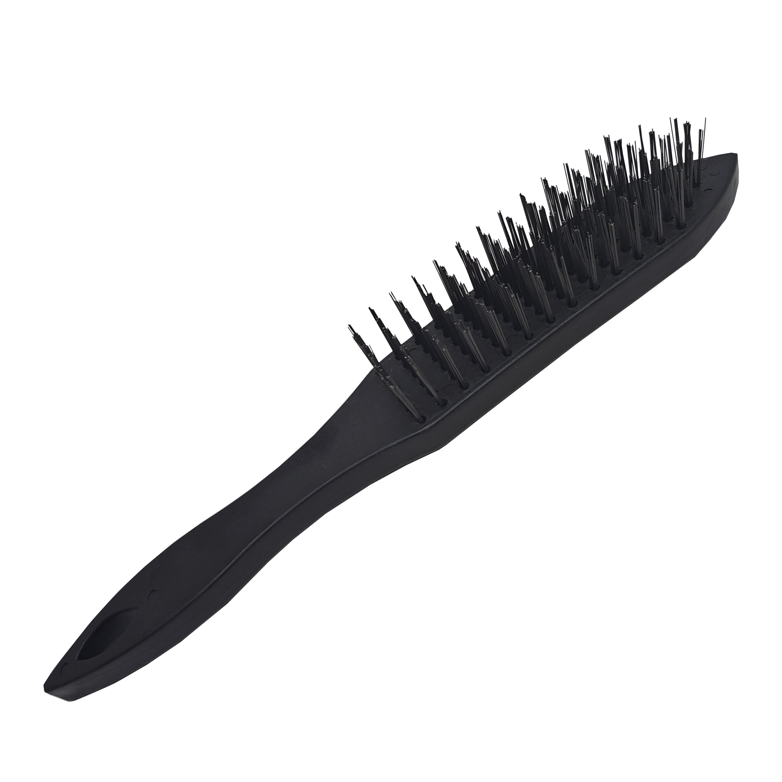 Black Steel Brush With Scraper used for corrosion, contaminants and paint coatings removal from metal and other surfaces. Convenient usage,designed with plastic ergonomic handle.For cleaning all rough surfaces on a range of materials to remove paint, dirt, rust and stubborn deposits.Convenient usage,designed with plastic ergonomic handle.