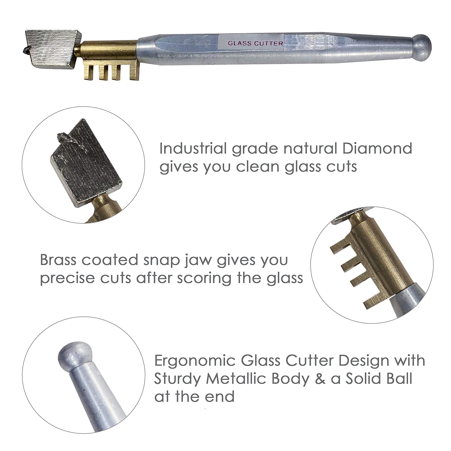 【EASY TO USE 】Basic and Simple tool for straight and curve cutting of glass. Score the glass using diamond tip along the line or curve you want to cut. Then using the brass coated snap jaw you can easily snap the glass along the score which guarantees clean and precise cuts.