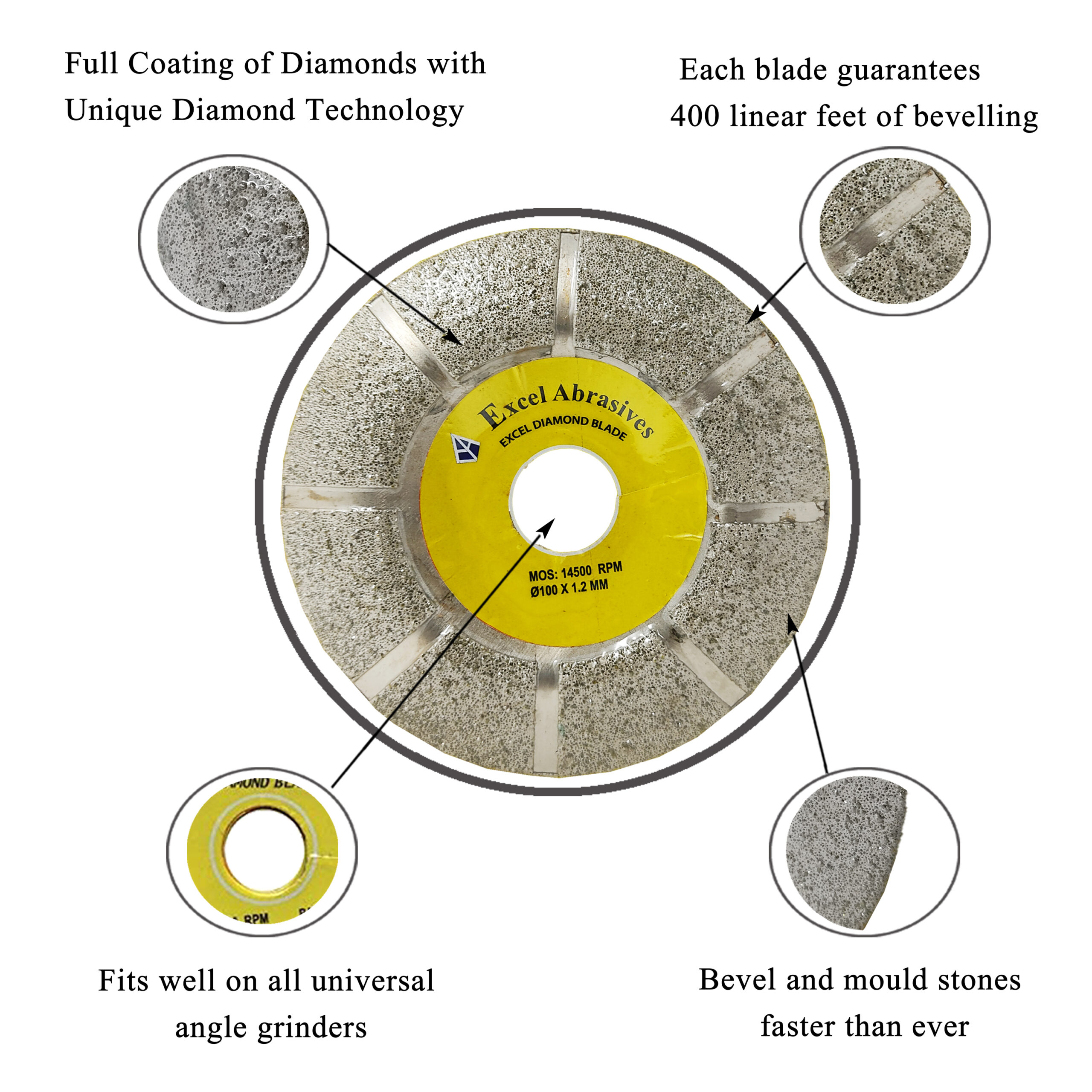 - Excel Impex brings you diamond blade which replaces conventional segmented cup wheel for moulding and grinding of marble, granite, stones and concrete.