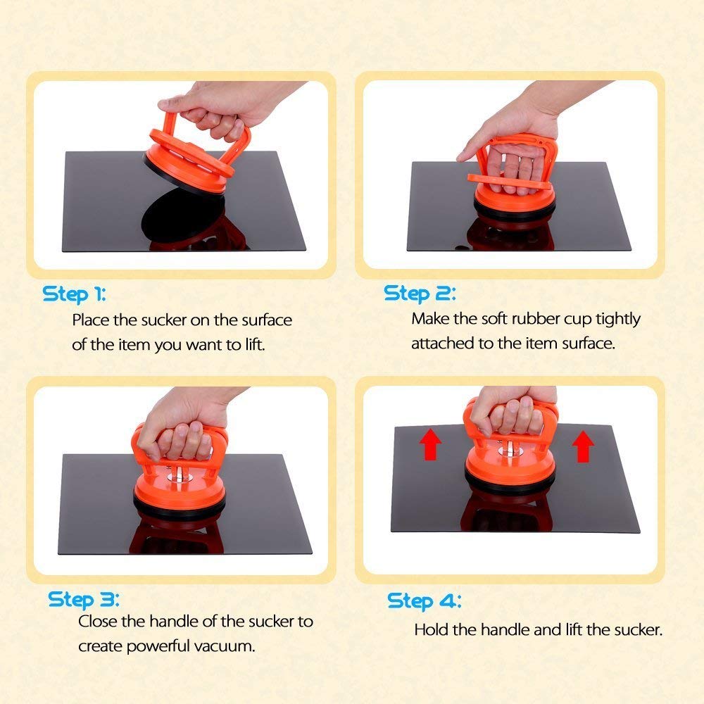 Lifter enable you to move object much easier with less effort. When we place the suction cup on an object, the surface of the object should be flat, clean, smooth and nonporous. Simply place the suction cup on the object’s surface and press the suction cup vertically downwards to raise the object