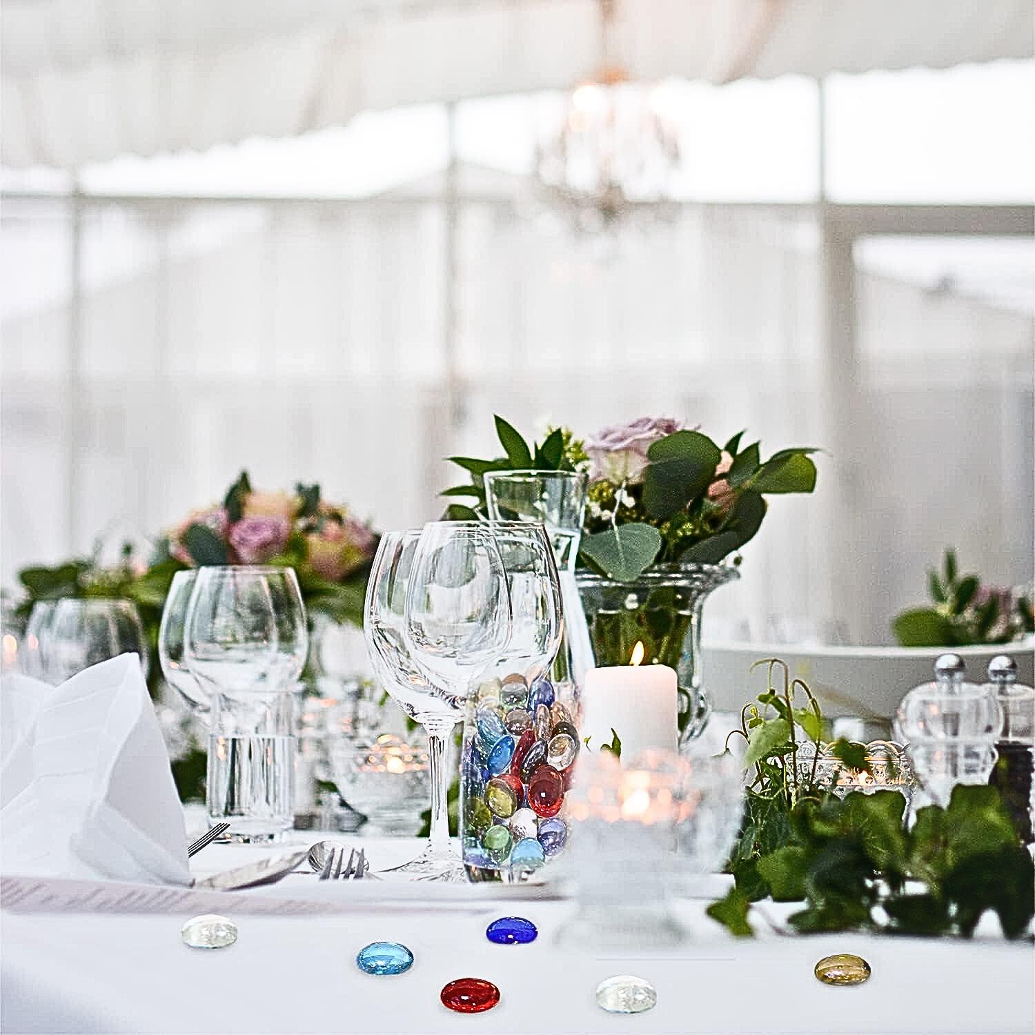 Decorate your home, aquarium or special event with these attractive original glass flat bottom table scatters by Excel Impex. These beautiful glass stones are made of high-quality clear glass material with inherent colors due to which they are completely translucent and will let the light shine through them. These glass pieces are completely submersible in water. The colors won’t fade even if its placed on sunlight or other weathering agents act on them. These pretty gems will surely add an embellishing touch to your eye-catching centerpiece. These modern looking, flawless pebbles are designed to complement and enhance even the simplest event or floral arrangement. Each pack of flat marbles is crafted to perfection thus creating a sleek, flawless accent. Uses: DIY crafts, floral arrangements, candles, table scatters, candy jar decor, vase decor, etc. Popular with: artists, event planners, florists, interior designers, restaurants, home decorators. Warning: Choking Hazard This is a Marble – Keep away from children under 3 years of age.