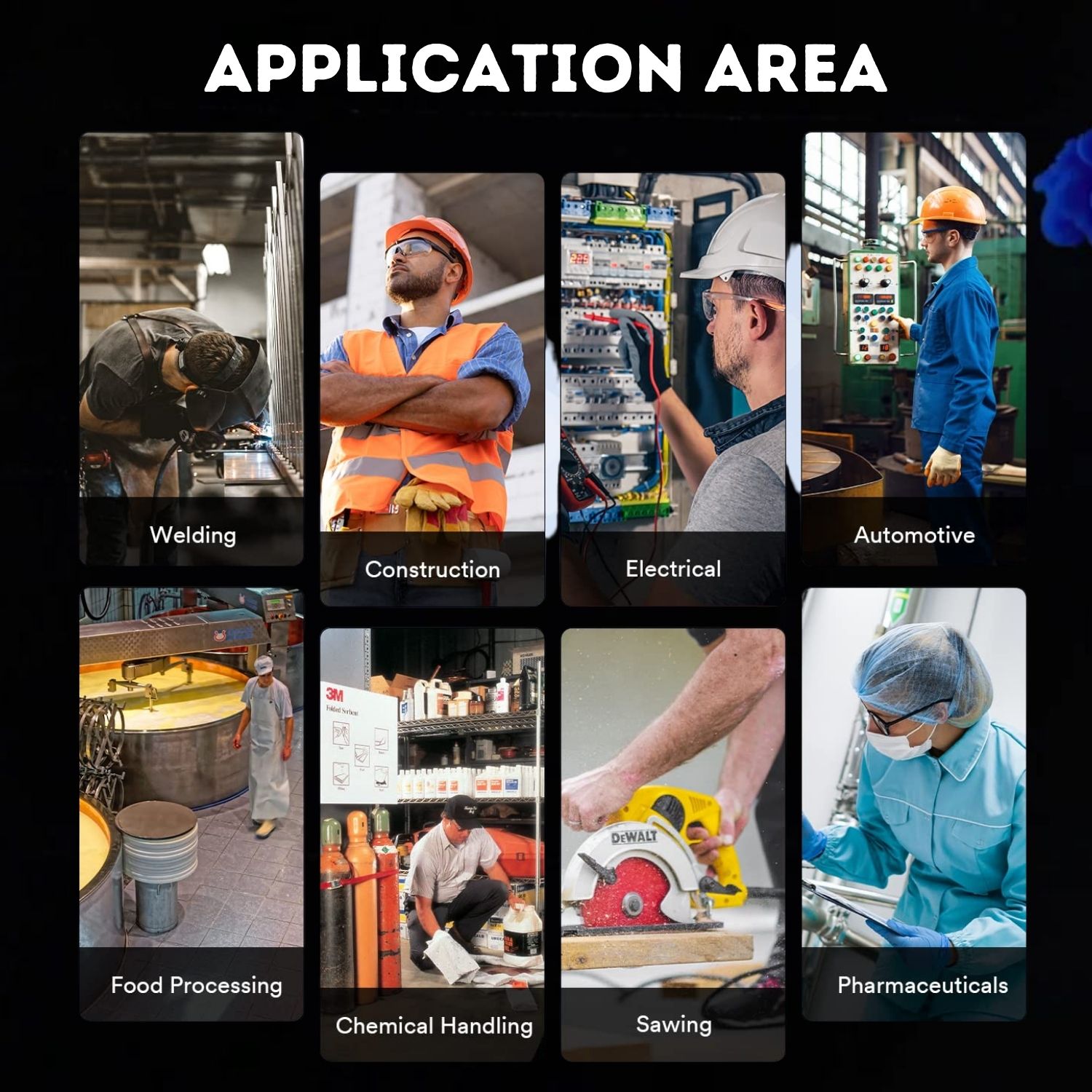 - Suitable for laboratory, medical treatment, paint spraying, polishing etc.